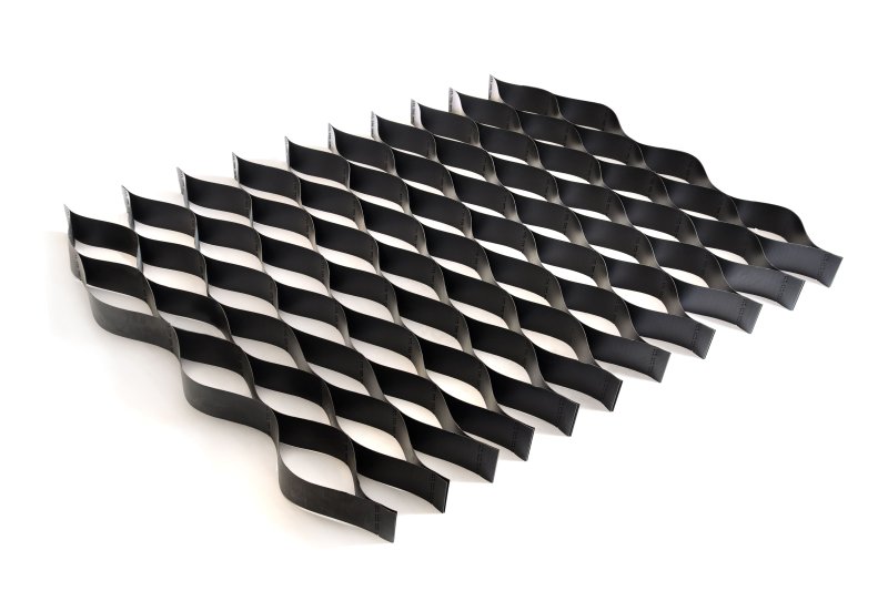 გეობადე (GEOCELL) - ეს გეოსინთეტიკური მატერიალი შედგება პარალელურად მოწყობილი ბრტყელი ლენტებისგან, რომლებიც მყარად არის შეკრული ერთმანეთთან თერმული შედუღების მეთოდით.   უჯრედებს აძლევს სპეციალურ ფიჭურ ფორმას.რომლის შევსებაც შესაძლებელია მაღალ ან დაბალ ფრაქციული ღორღით, ქვიშით ან ფხვიერი მიწით.  დაკეცვისას მატერიალს აქვს კომპაქტური მოდულის ფორმა, რაც აადვილებს მისი ტრასპორტირებას და შენახვას.